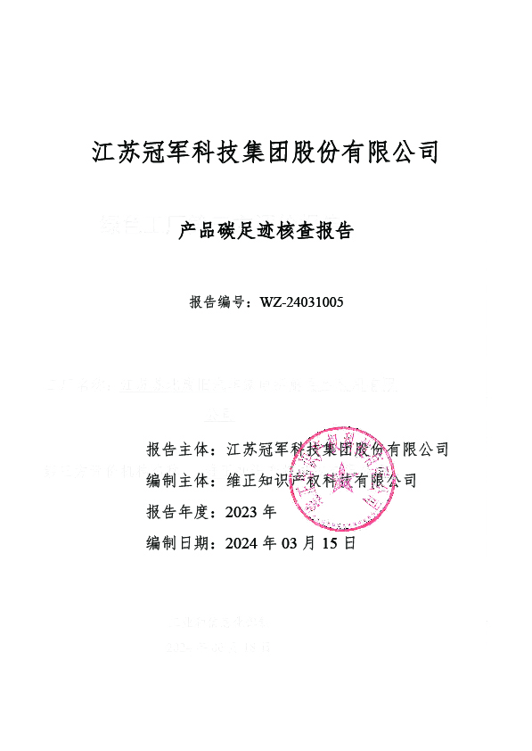 江蘇冠軍科技集團股份有限公司 產(chǎn)品碳足跡核查報告