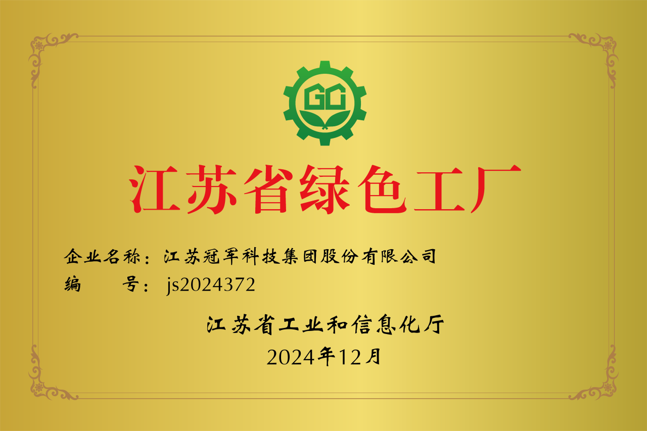 冠軍榮耀,綠動未來—熱烈祝賀冠軍集團榮膺“省級綠色工廠”稱號!
